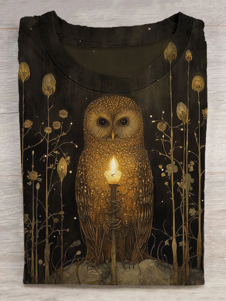 Unisex Owl And Candle Printed Vintage Fashion Loose Short Sleeve T-Shirt