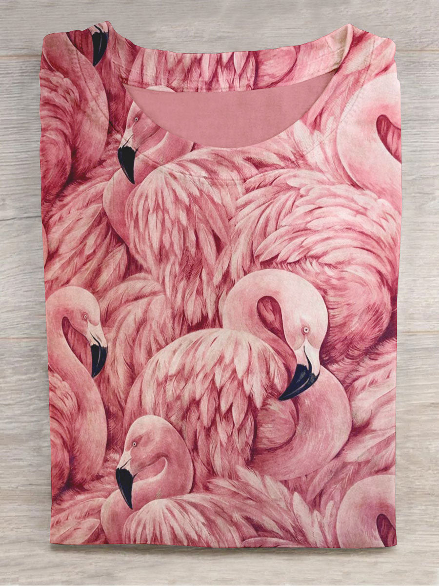 Graphic Tee Unisex Pink Flamingo Art Print Round Neck Short Sleeve T-Shirt