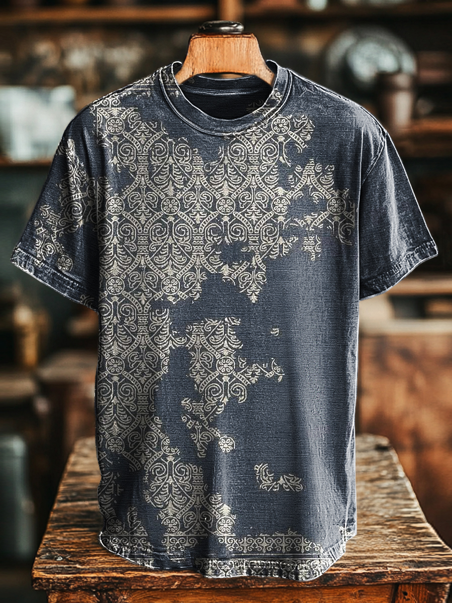 Unisex Retro Abstract Ethnic Geometric Printed Casual Loose Short Sleeve T-Shirt