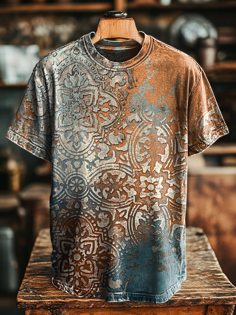 Unisex Retro Abstract Floral Old Print Casual Loose Short Sleeve T-Shirt