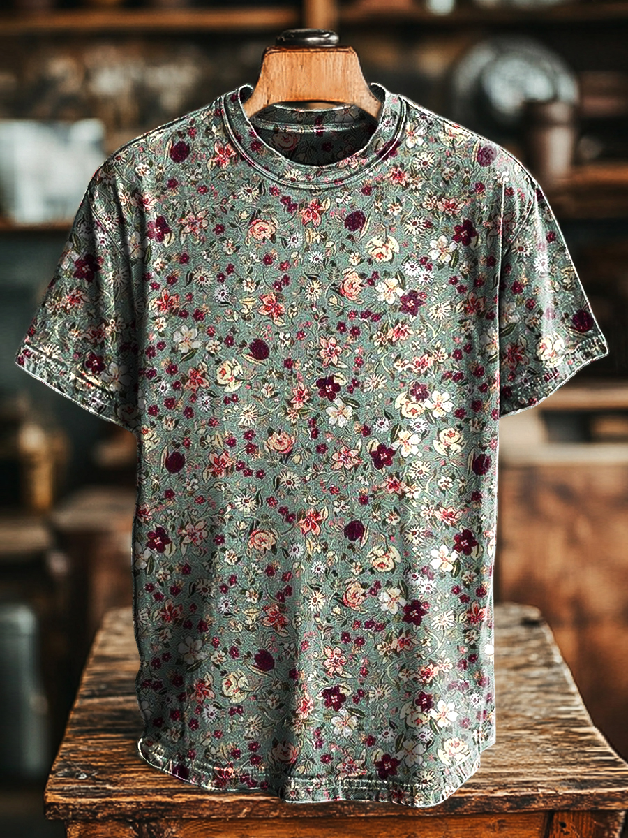 Unisex Retro Abstract Floral Print Casual Loose Short Sleeve T-Shirt