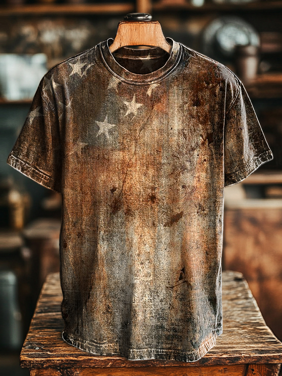 Unisex Retro Aged Star Printed Casual Loose T-Shirt