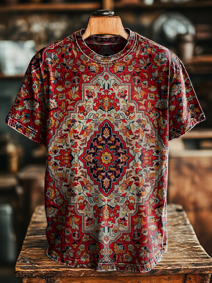 Unisex Retro Ethnic Floral Print Casual Loose Short Sleeve T-Shirt