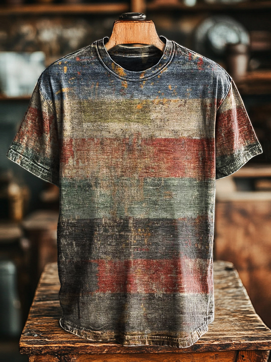 Unisex Retro Stripe Printed Old Casual Loose Short Sleeve T-Shirt