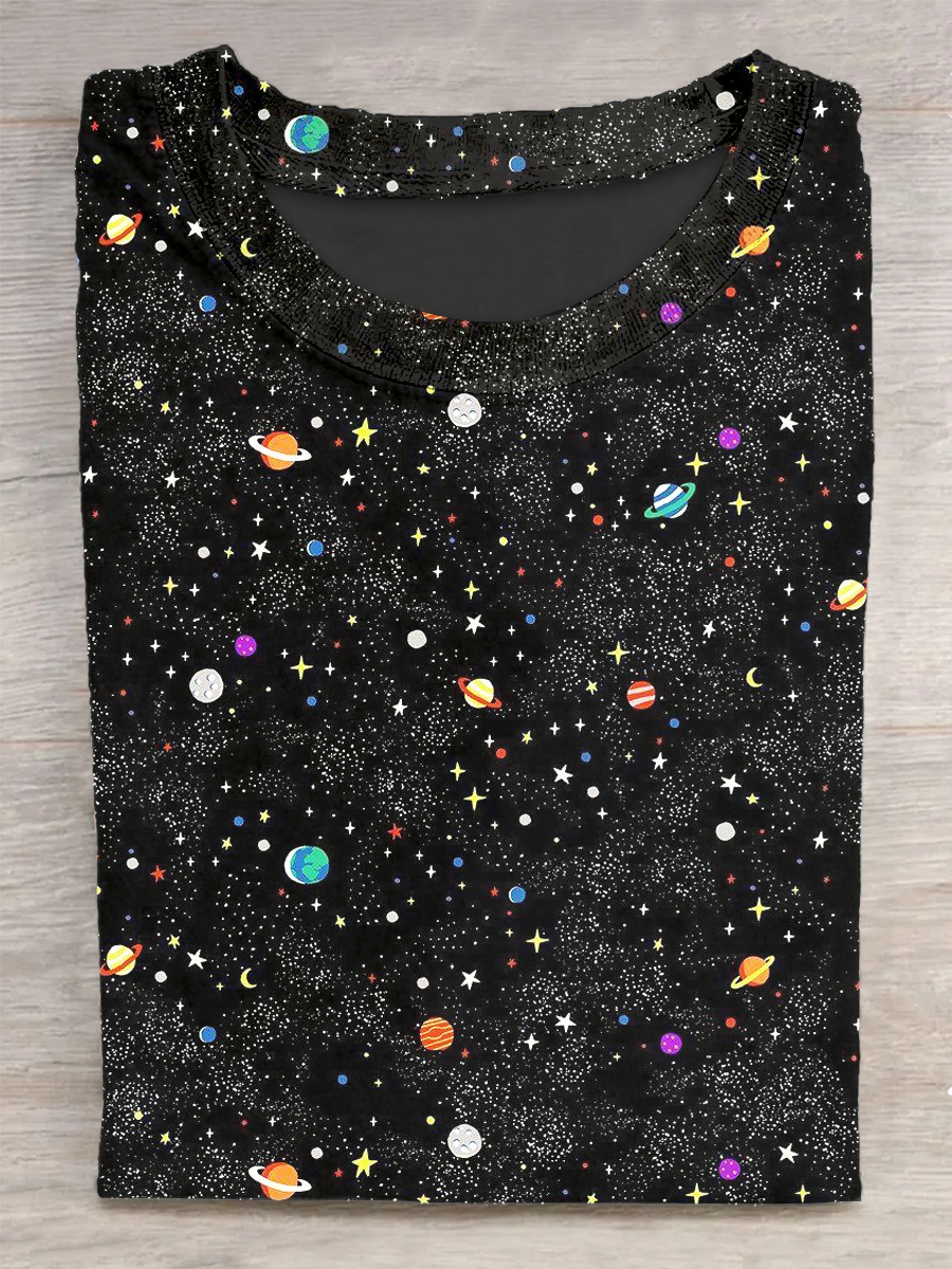 Unisex Starlit Sky Printed Vintage Fashion Loose Short Sleeve T-Shirt