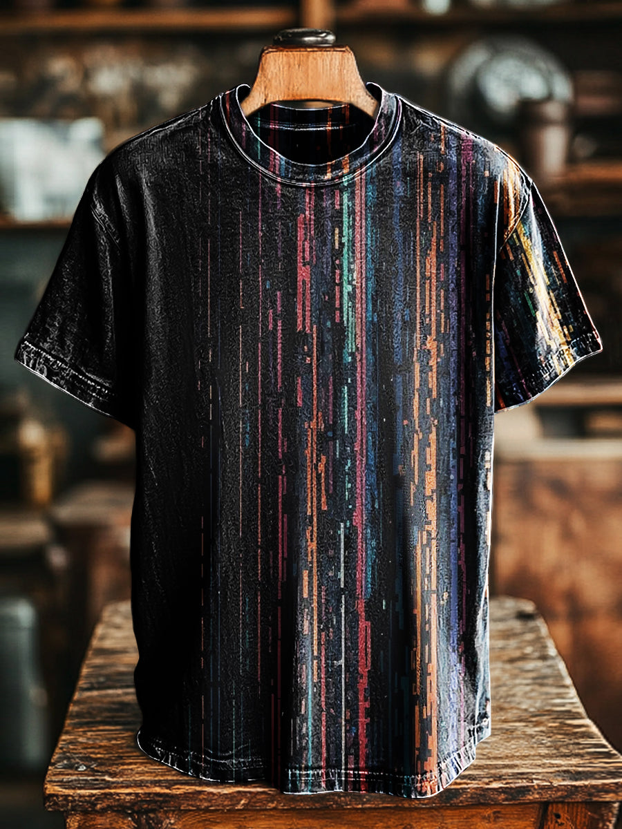 Unisex Vintage Abstract Color Line Print Casual Short Sleeve T-Shirt