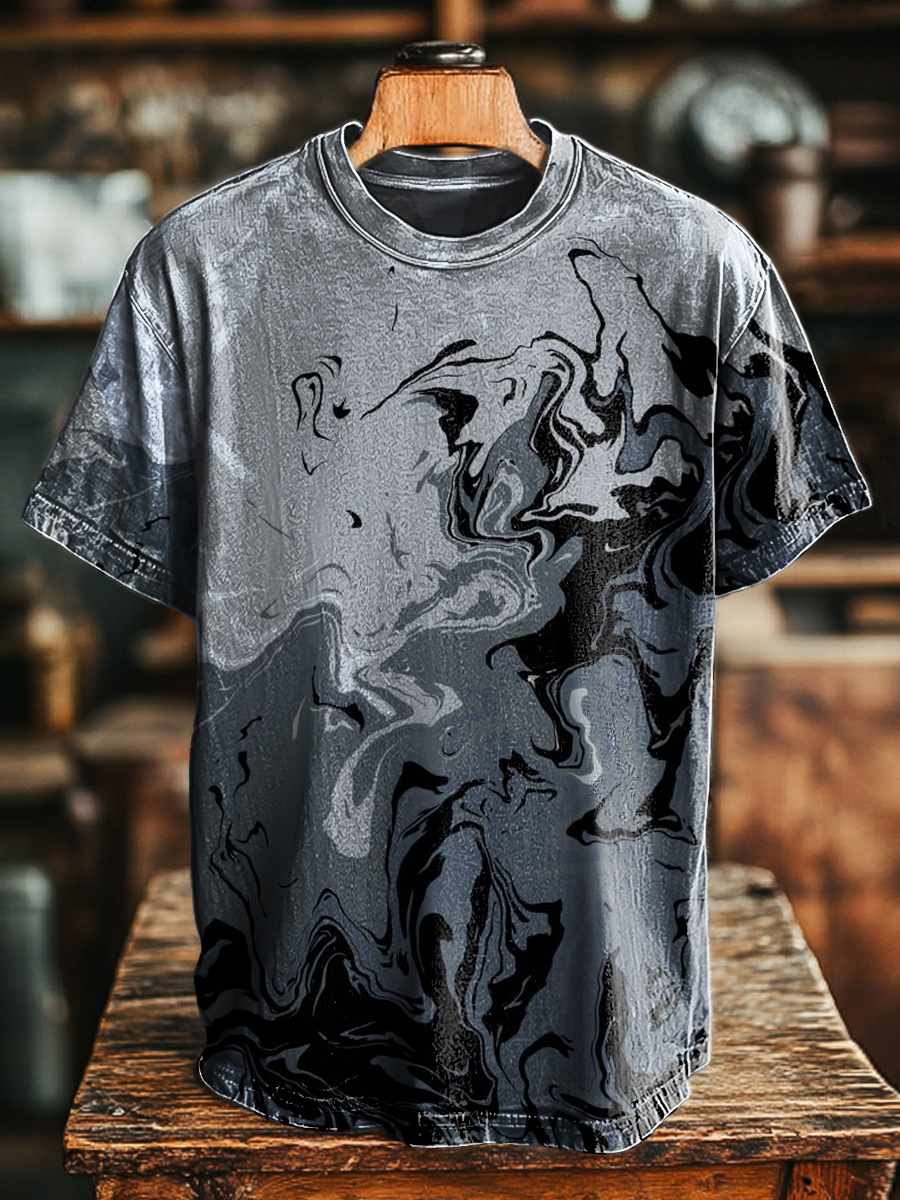 Unisex Vintage Abstract Flame Painting Print Casual Loose Short Sleeve T-Shirt