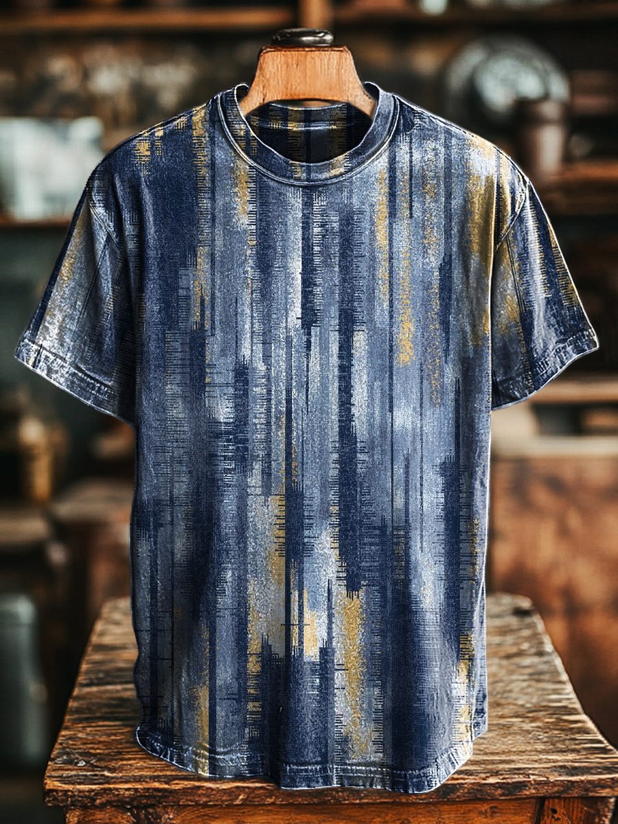 Unisex Vintage Abstract Swoosh Stripe Print Casual Loose T-Shirt