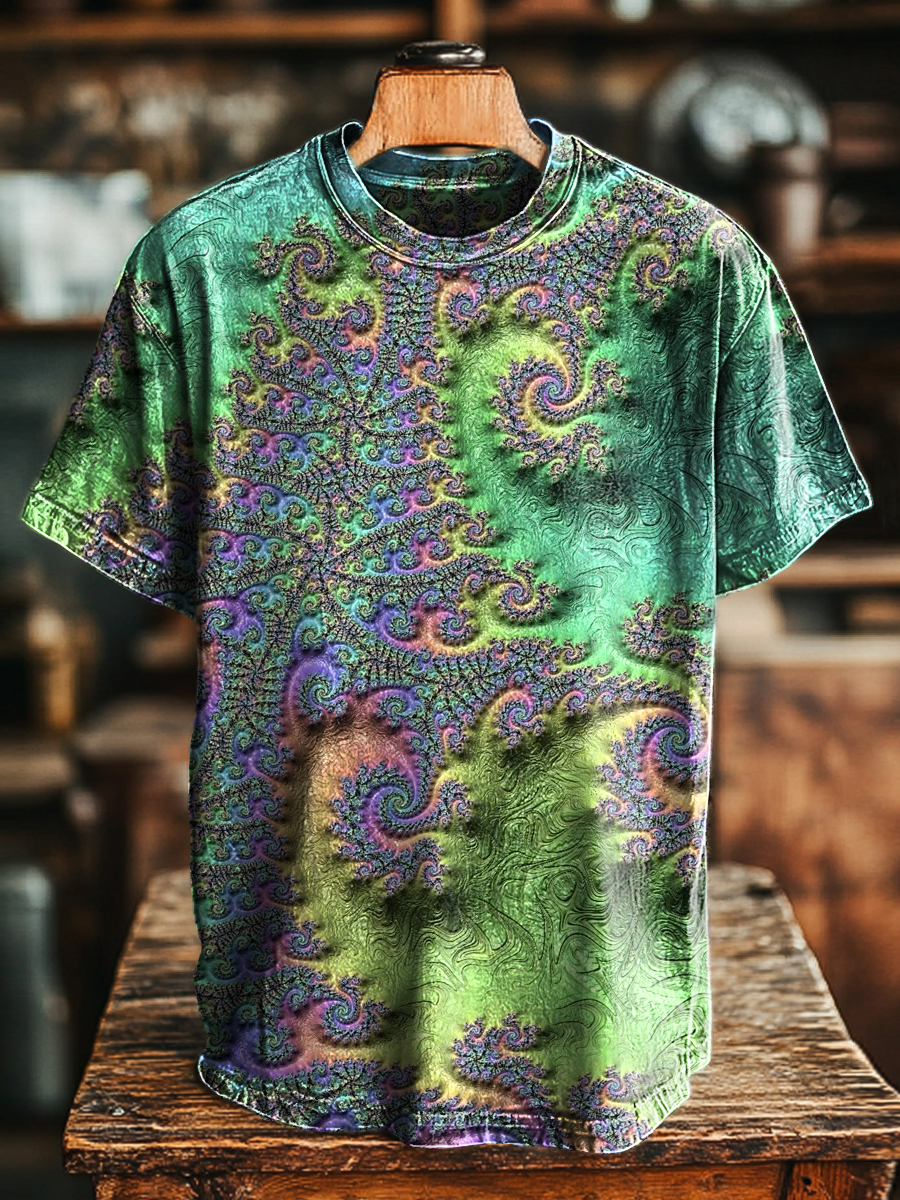 Unisex Vintage Abstract Textured Print Casual Loose T-Shirt
