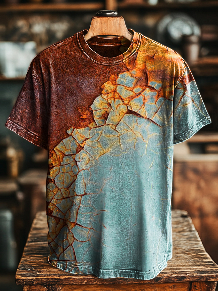 Unisex Vintage Aged Paint Texture Art Print Casual Loose T-Shirt