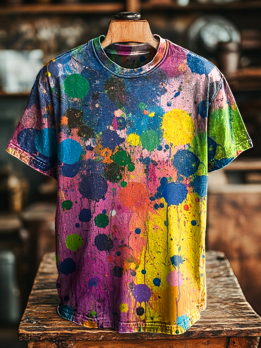 Unisex Vintage Color Graffiti Print Casual Loose T-Shirt