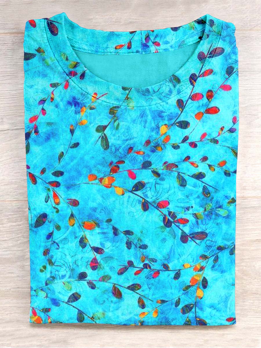 Unisex Vintage Leaf Floral Print Casual Short Sleeve T-Shirt