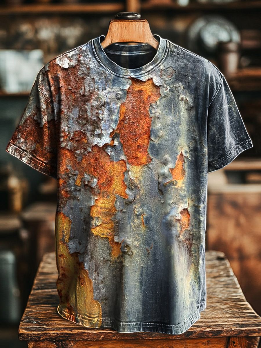 Unisex Vintage Textured Mottled Art Print Casual Loose T-Shirt