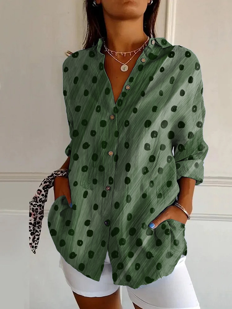 Vintage Abstract Art Polka Dot Print Casual Long Sleeve Shirt