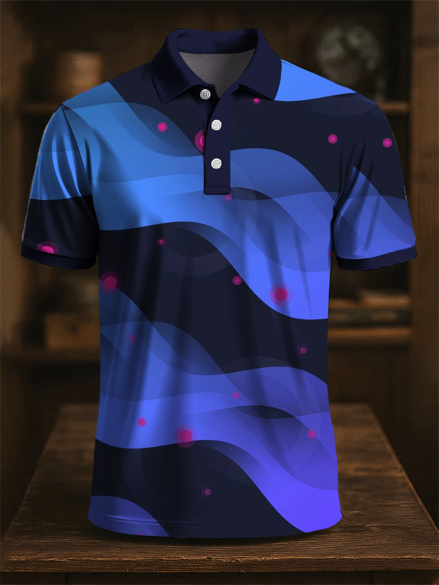 Vintage Art Abstract Line Polka Dot Print Casual Business Polo Shirt