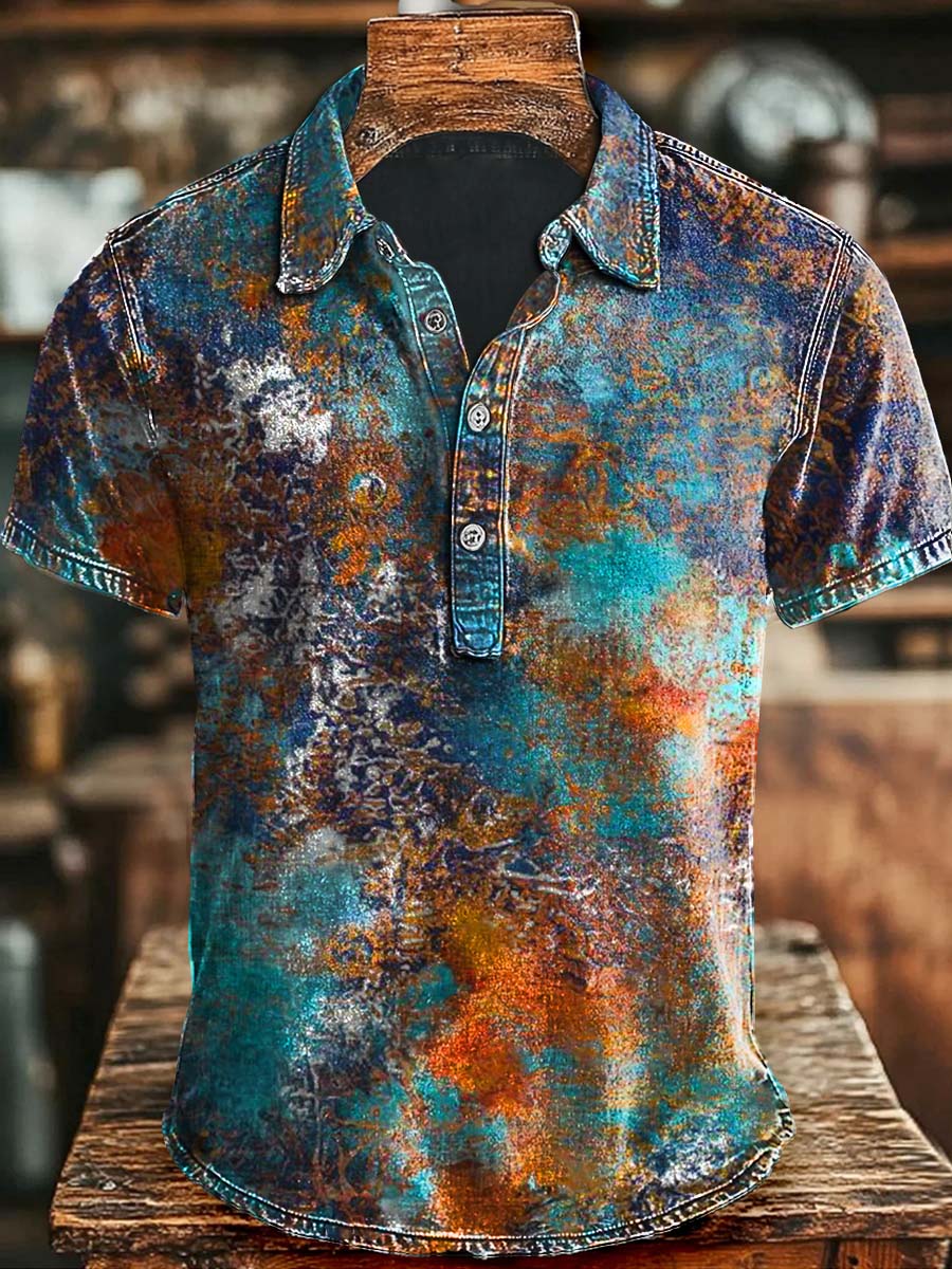 Vintage Art Gradient Print Casual Polo Shirt