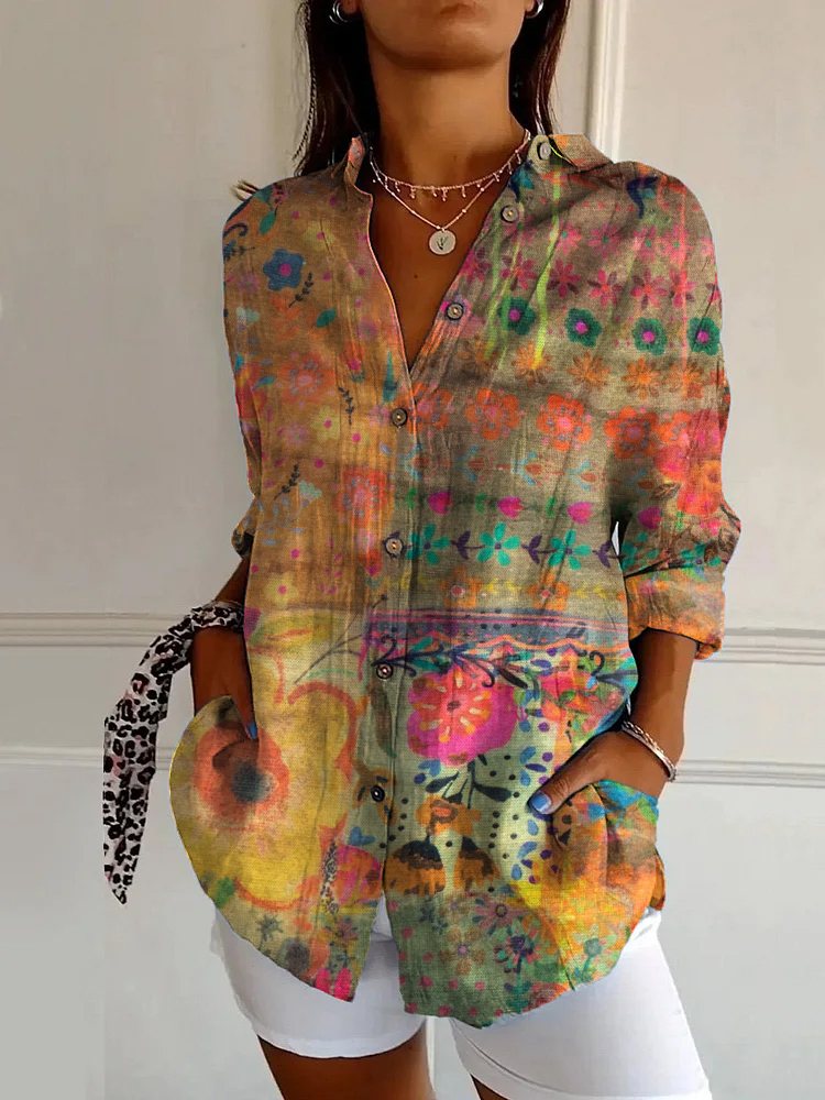 Vintage Bohemian Floral Print Casual Long Sleeve Shirt