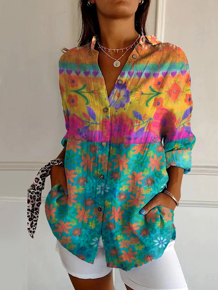 Vintage Bohemian Floral Print Casual Long Sleeve Shirt