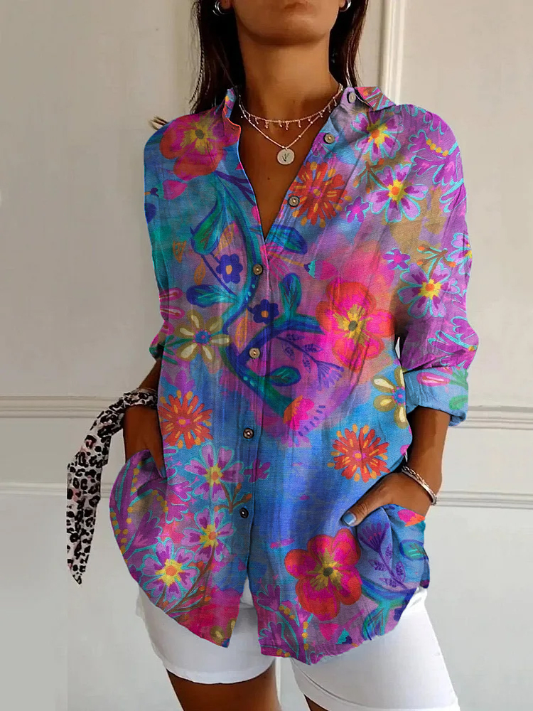 Vintage Bohemian Floral Print Casual Long Sleeve Shirt