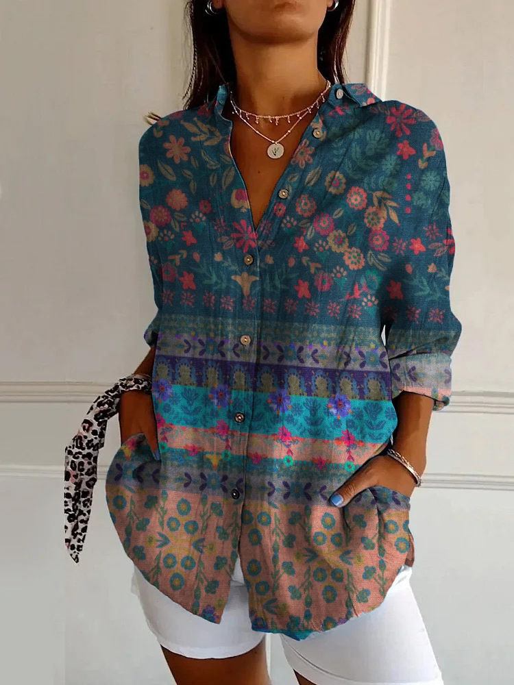 Vintage Bohemian Floral Print Casual Long Sleeve Shirt