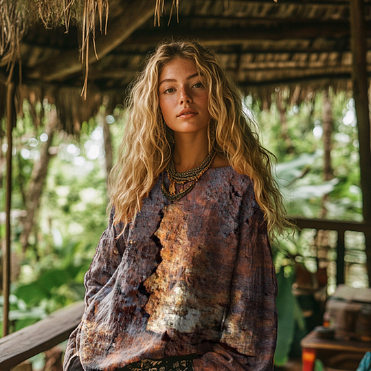 Vintage Distressed Rust Print Cotton and Linen Loose Top