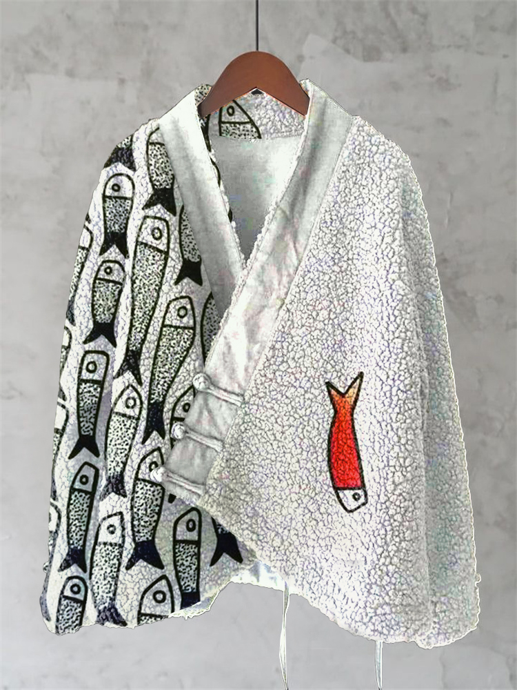 Vintage Fish Japanese Art Wool Kimono Cardigan