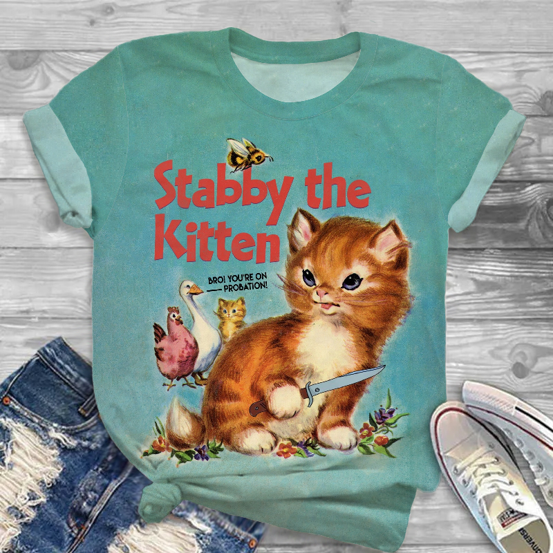 Vintage Funny Art Print Casaul Short Sleeve Blue T-shirt