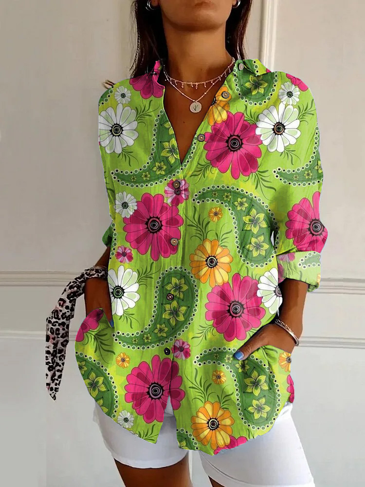 Vintage Holiday Paisley Floral Print Casual Long Sleeve Shirt