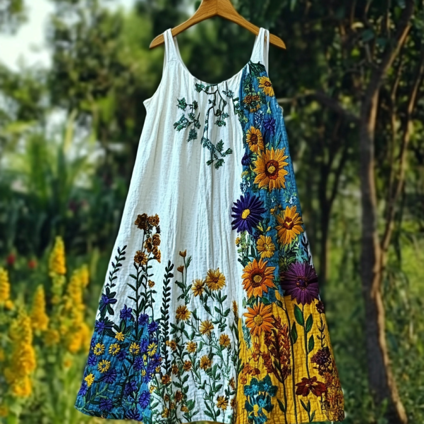 Vintage Tribal Floral Art Color Block Sleeveless Maxi Dress