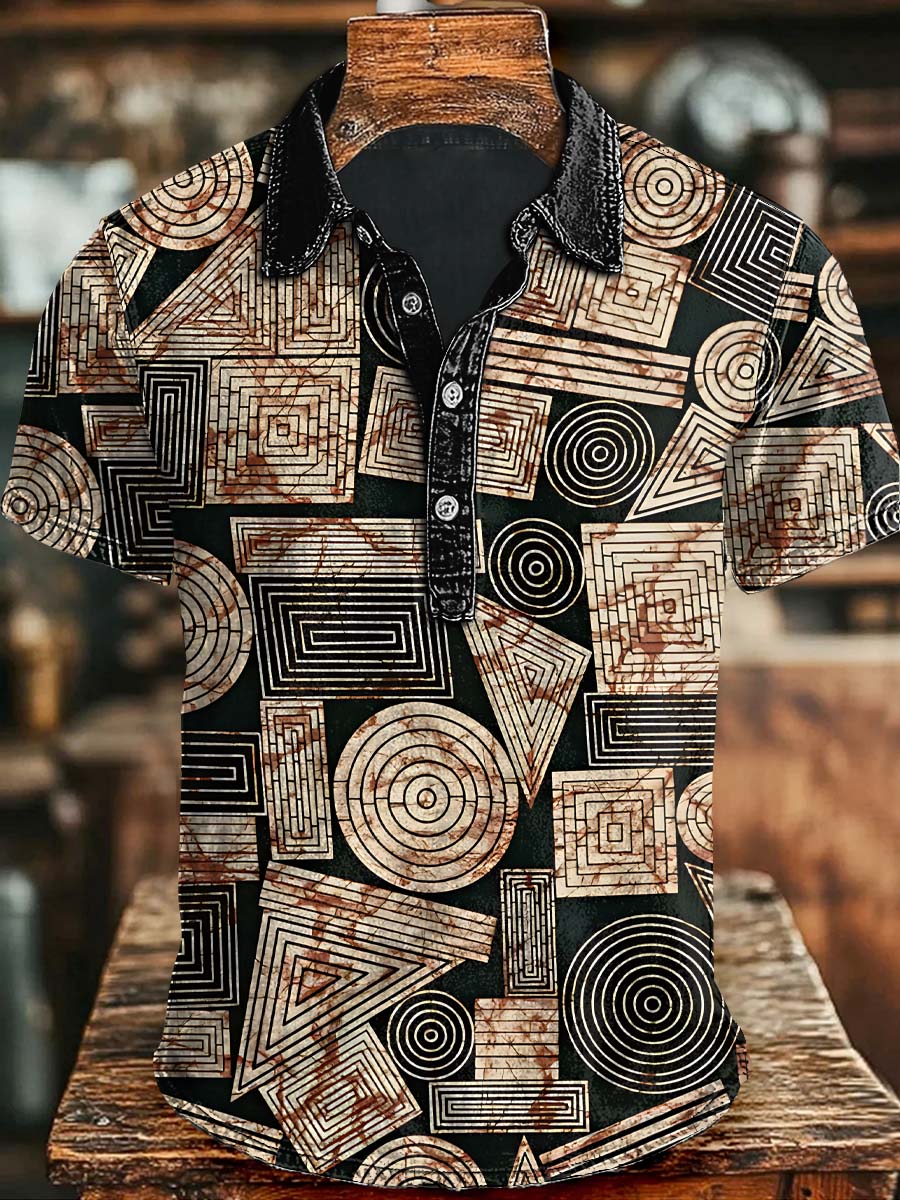 Vintage Tribal Pattern Printed Casual Short Sleeve Polo Shirt
