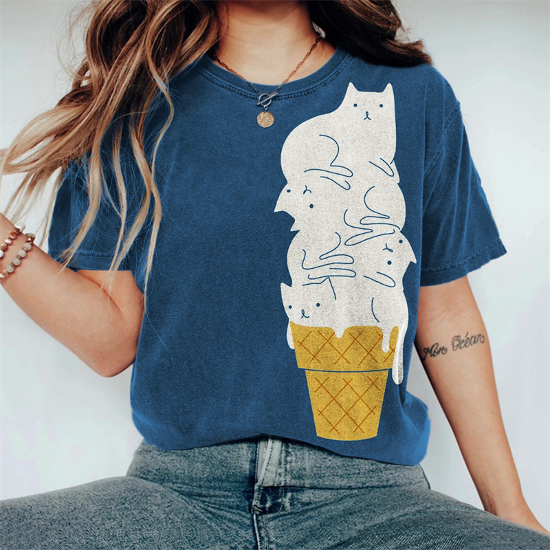 White Cats Ice Cream Cone Washed T Shirt
