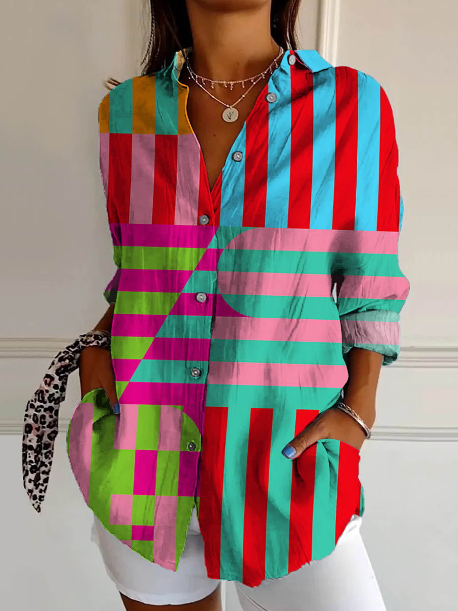 Women's Abstract Geometric Pattern Art Print Casual Cotton Shirt