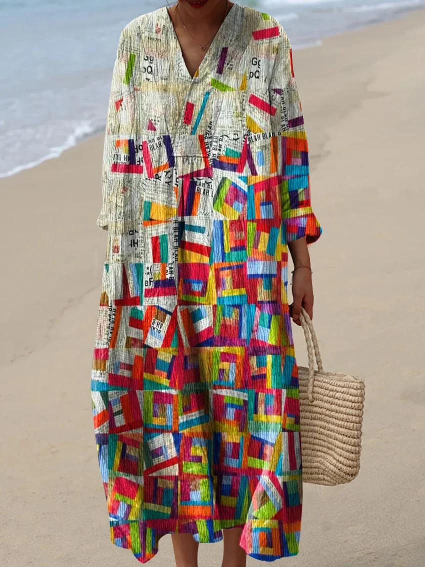 Women's Abstract Geometric Pattern Art Print Cotton Dress