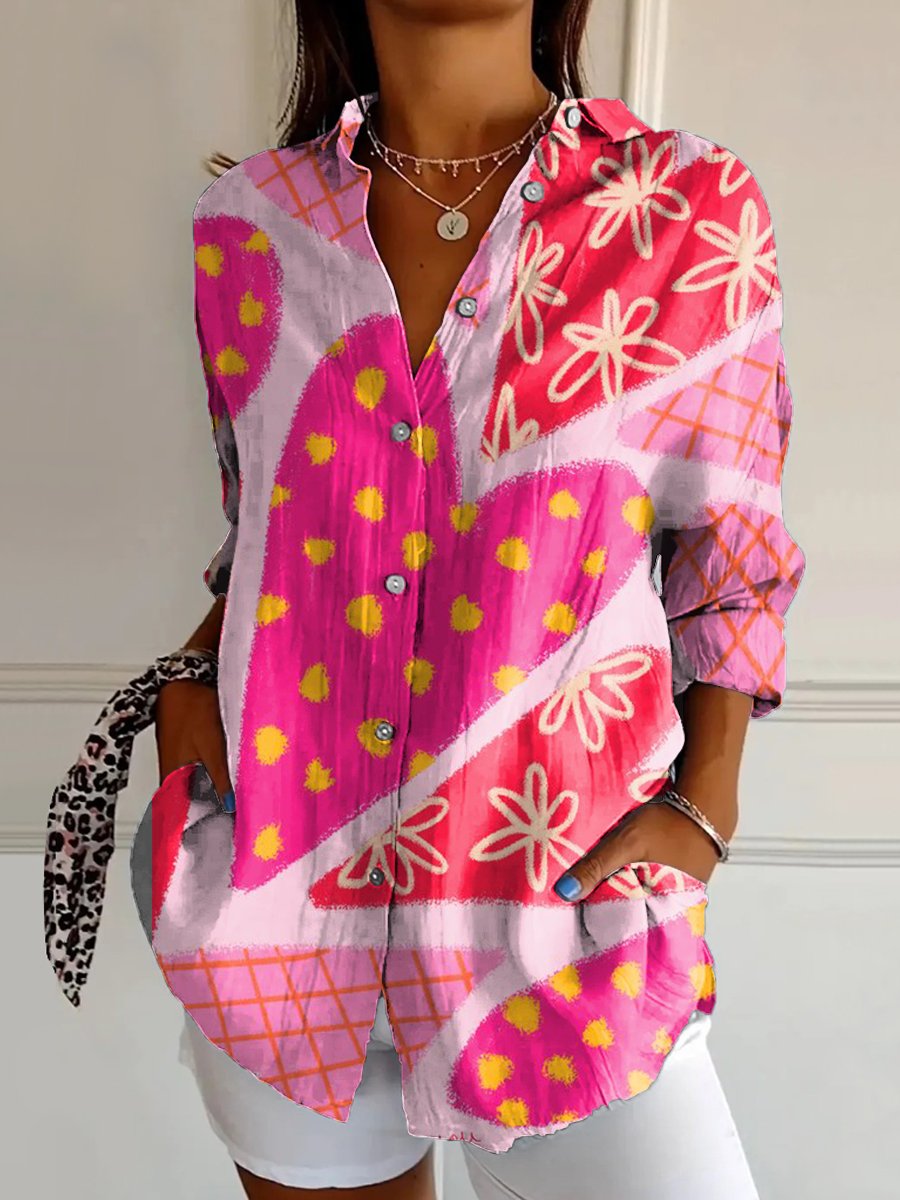 Women's Cartoon cute illustration Art Print Casual Cotton Shirt