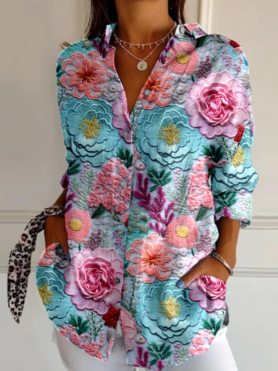 Women's Coolorful Floral Pattern Linen Blend Street Shirt