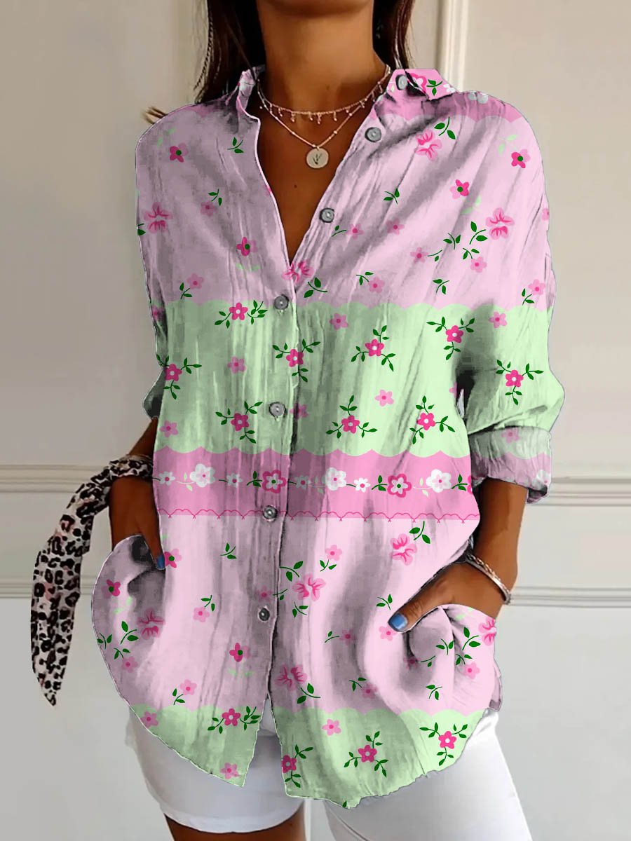 Women's Lovely Floral Art Print Casual Cotton Shirt