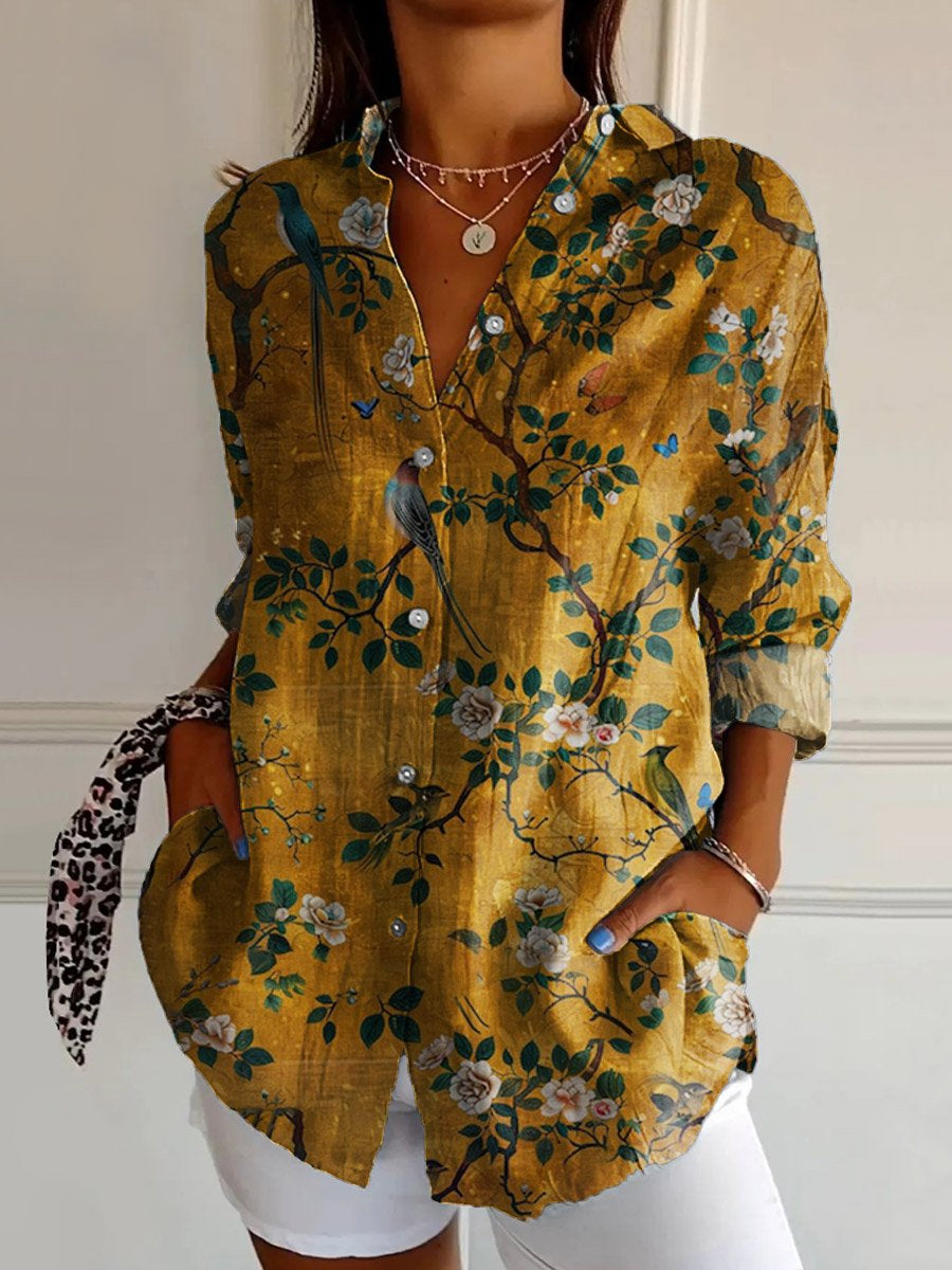Women's Robin Art Print Casual Cotton Shirt