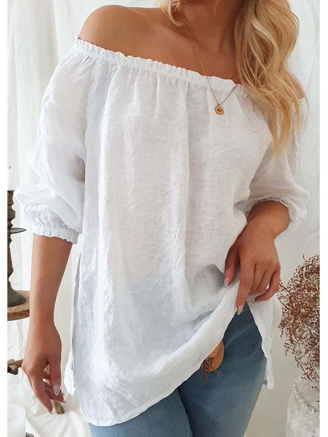 Women's Soft Linen Off Shoulder 3/4 Sleeve Shirt