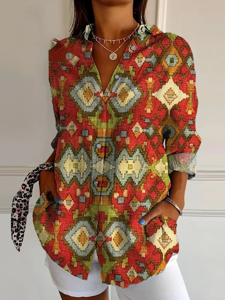 Women's Vintage Ethnic Pattern Art Print Casual Cotton Shirt