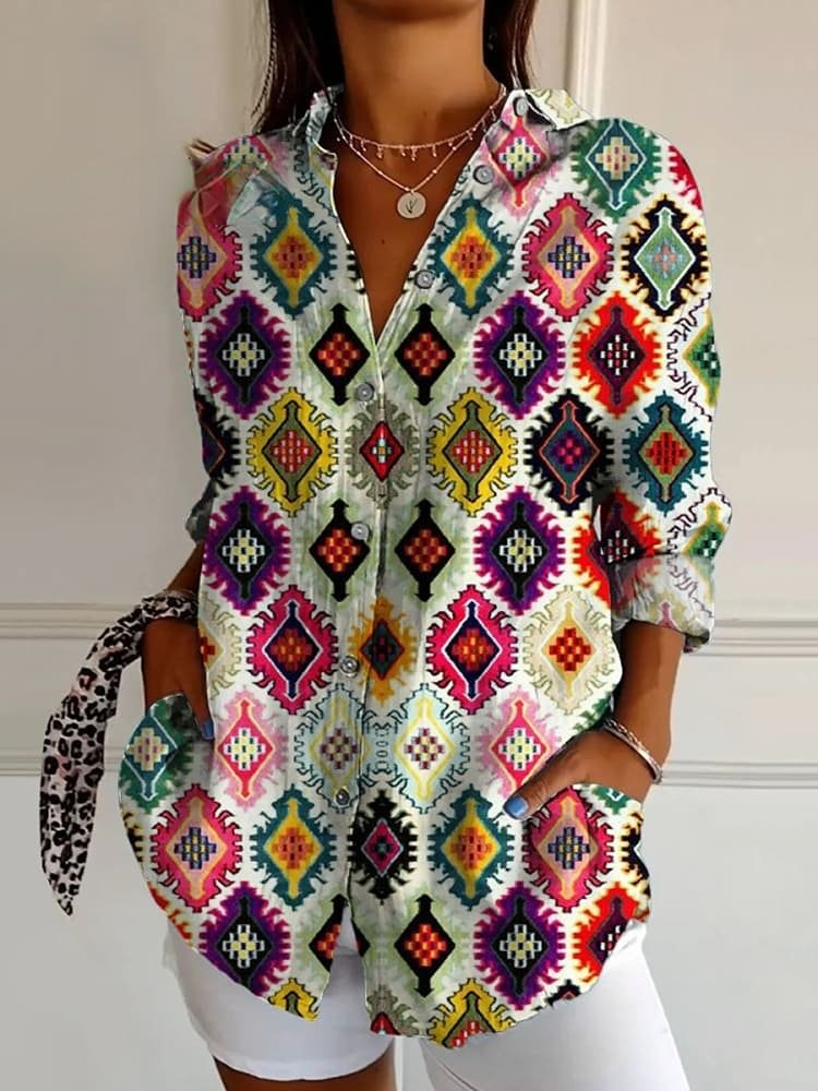 Women's Vintage Ethnic Pattern Art Print Casual Cotton Shirt