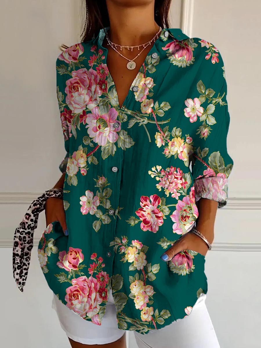 Women's Vintage Floral Pattern Art Print Casual Cotton Shirt